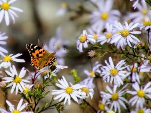 さらに第2管理地に移動し、カワラノギクの開花状況を確認。今年は本当に素晴らしく、多くの蝶もみられます。